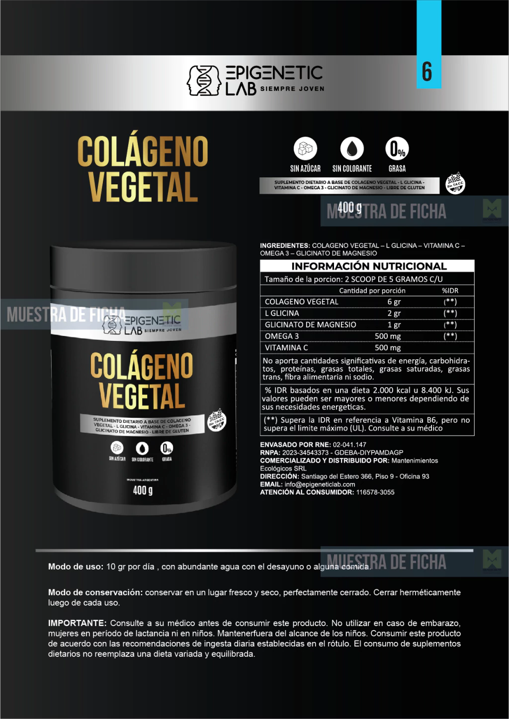 DOSIS: 10 grs POR DIA CON LAS PRINCIPALES COMIDAS GENERADOR NATURAL DE COLAGENO RNE: 02.041.147 RNPA: EX-2023-34543373 LOTE; 6744