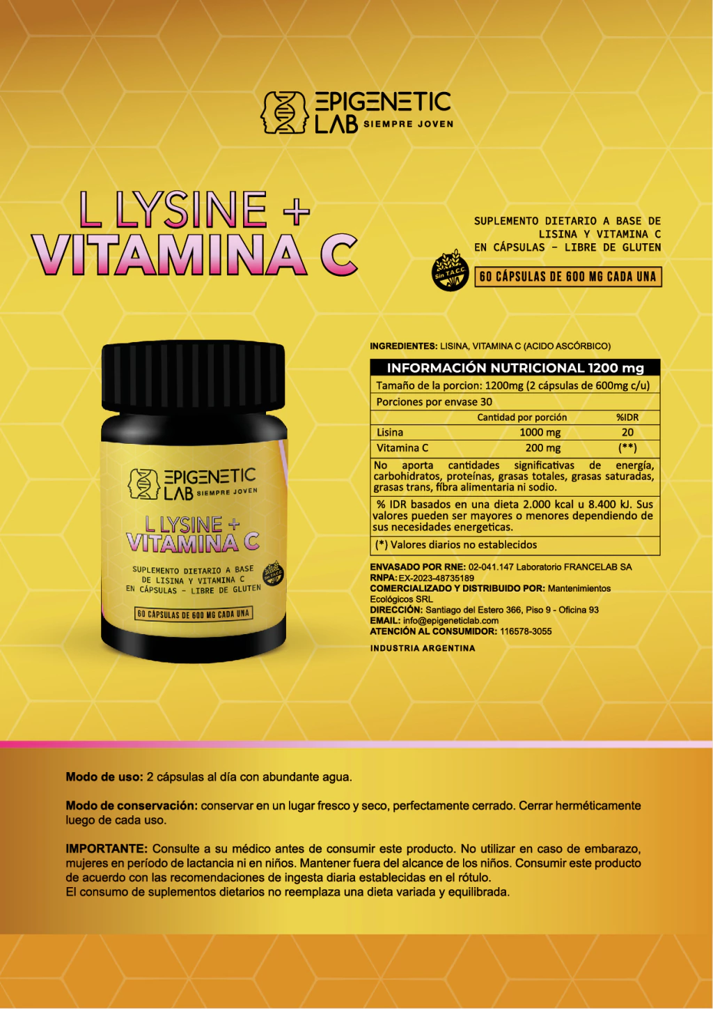 LISINA + VITAMINA C X 60 CAPSULAS DE 600 MG SIN TACC