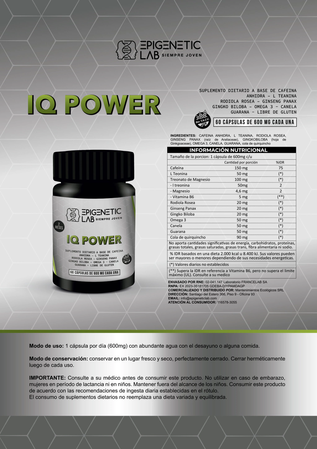 · ESTIMULA, LA MEMORIA, por el aporte de La cafeína Anhidra. Treonato de Magnesio, Ginseng Panamax
